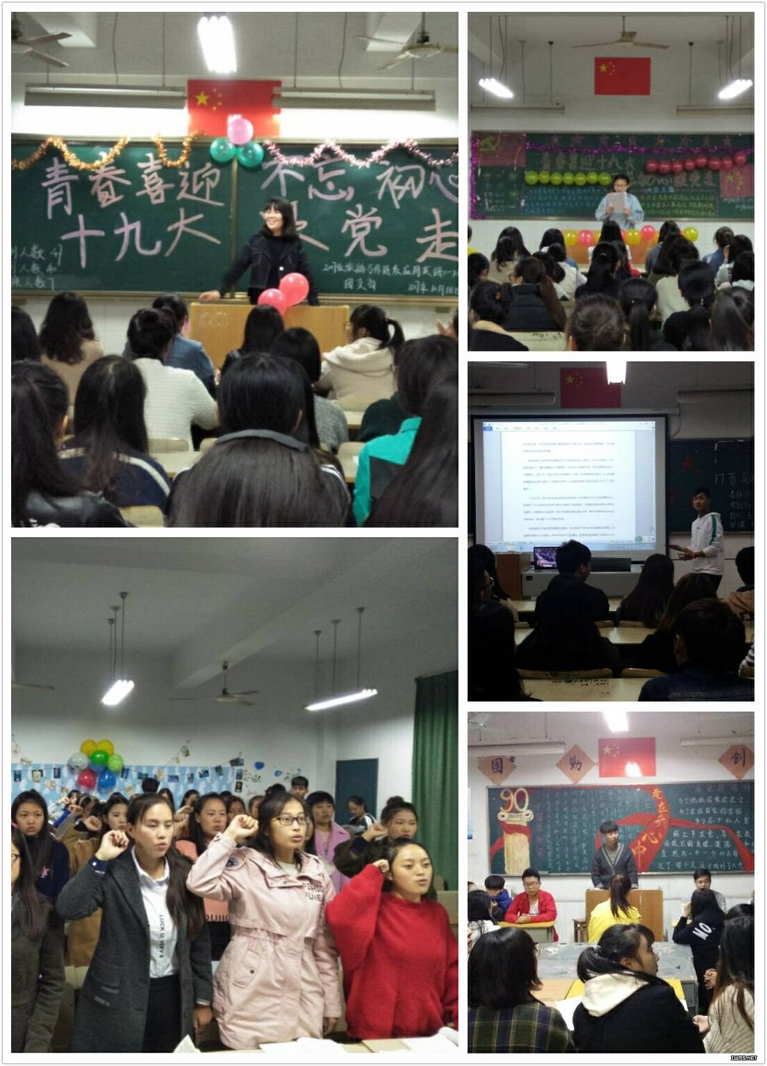 为了增强广大青年团员的民族自豪感和历史责任感,响应党的号召。10月18日晚7点,由马鞍山师专团委主办,校学生会组织部承办的“青春喜迎十九大,不忘初心跟党走”主题团日活动在各班级顺利展开。