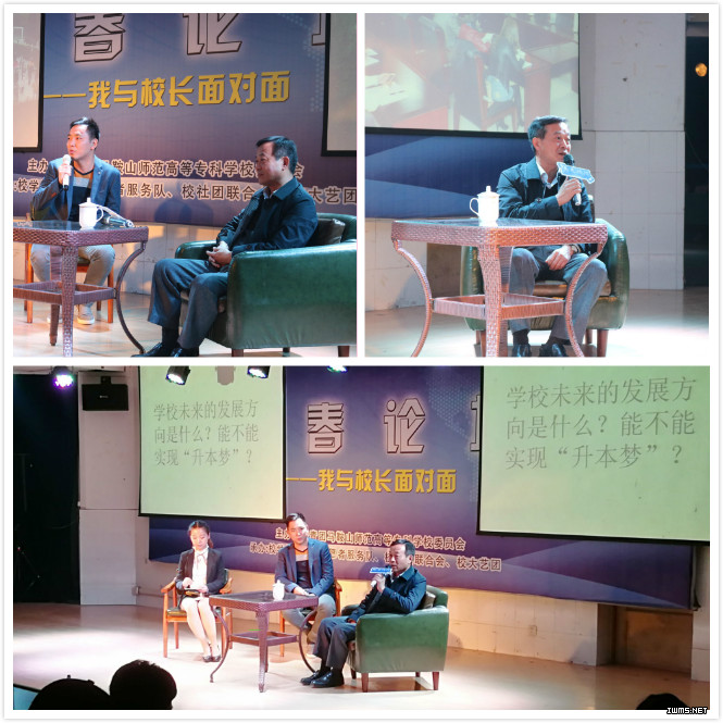 为了让同学们有机会零距离接触校长,解答广大同学在生活中、学习中的问题。11月1日晚6点,由马鞍山师专团委主办,校学生会、青年志愿者服务队、社团联合会、大学生艺术团联合承办的“青春论坛��我与校长面对面”访谈节目在学校阶梯教室拉开帷幕。校党委委员、副校长李秀华,保卫处负责人刘武,学生处负责人韩芳勤,资助中心负责人戴小兵等出席活动。