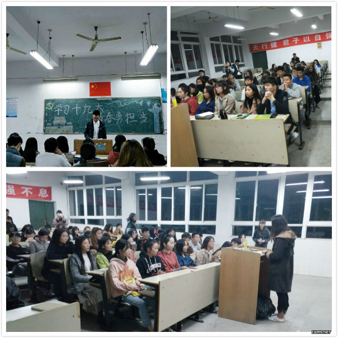 为了深入学习宣传十九大精神、提升同学们的思想认识水平。11月13日-16日,由马鞍山师专团委主办,校学生会组织部承办的"学习十九大,青春勇担当"主题团日活动在各系部有序的开展。2016级和2017级全体共青团员积极参与。