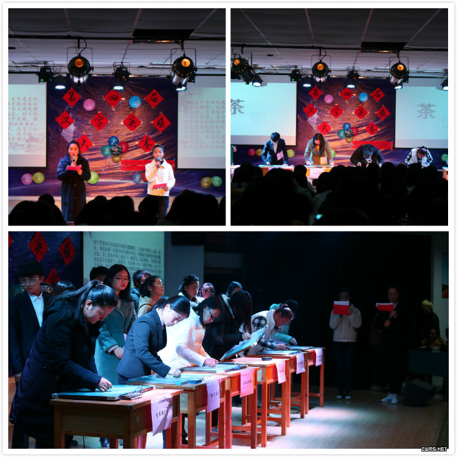 比赛在古筝演奏《渔舟晚唱》中拉开序幕。第一环节,“各显神通”。各系选出一名选手代表上台根据提示写出相应成语。在三十秒的有限思考时间里,各系选手应对复杂的图片快速作出反应,台下观众都惊呼连连,为选手加油打气。在狗尾续貂、削足适履等一系列生冷成语中,选手们依然能够冷静作答,其深厚的文学功底赢得了在场观众的阵阵掌声。紧接着,进入到了第二个环节“我最棒”,由各系所有参赛选手轮流进行补位听写,共三十个字词,每轮三十秒作答时间,在紧张激烈的竞争中,软件工程系选手尹胜男,表现出色,面对一些不常见的词汇应答如流,赢得了评委的一致认可。中场休息环节,互动游戏“看字写拼音”、“疯狂绕口令”,为整场活动缓解了紧张的气氛,调节了选手和观众的心情。接下来,进入到了本次大赛的最后一个环节“我是大文豪”团体赛,面对“四大短篇小说巨匠是什么?五湖四海指的是什么?”等问题,旅游与外语系的选手,凭借自己的文学常识而作出的回答,一次又一次让观众感到佩服,留下了深刻印象。