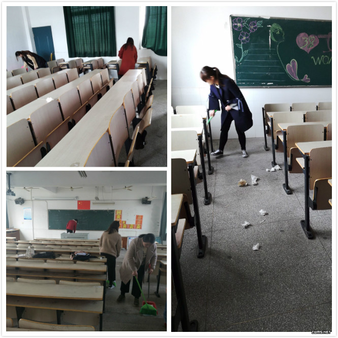 3月6日中午,学生会成员在负责人胡颖的带领下准时到达分配区域。在活动过程中,同学们精神饱满、热情洋溢,对班级内的卫生、走道垃圾的清扫以及阶梯、护栏的垃圾和尘土进行了集中的清理,经过同学们两个中午的奋战,垃圾和尘土基本被清理干净,校园环境得到了极大的改善。