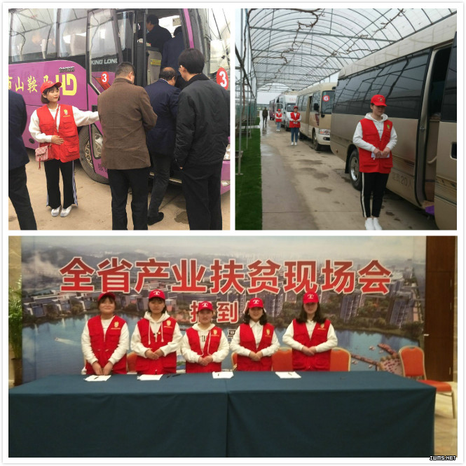 为保证现场会的顺利召开,更好地协助本次产业扶贫工作。3月17日上午,团市委对校青年志愿者进行了实地踩点、工作分配、人员安排等培训。3月18日下午两点,参加现场会的嘉宾们被分为两组,分别从不同路线考察扶贫项目的建设成果。志愿者们提早等候在各自负责的工作地点,对前来考察的嘉宾进行引导,为其分发雨伞及矿泉水,并负责上下车后的人数清点。校青年志愿者协同配合,以周到的服务、文明的举止,充分展示出了志愿者的良好精神风貌,赢得了参会嘉宾的广泛好评。