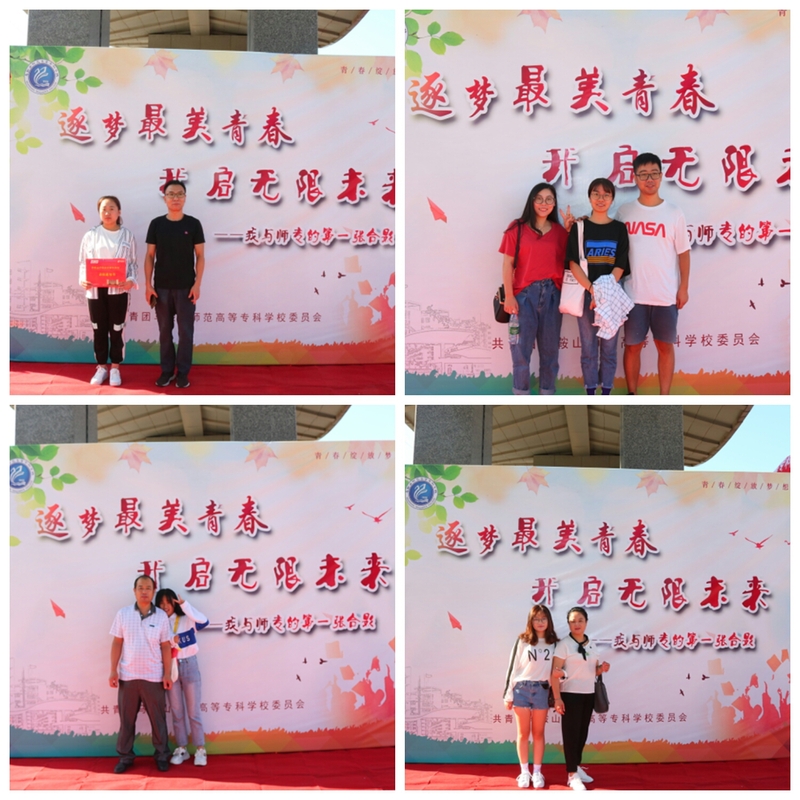 在今年的迎新活动中,校团委打造了一面专属新生的合影墙。合影墙的出现,为新生和家长提供了拍照留念的最好场地。一众新生带着同行的父母,在合影墙前拍照留念,记录在师专的最美一刻。一位来自教师教育系的新生说到 :“来大学的第一天,可以用这样的方式留下属于自己的一份回忆。我觉得很棒”。络绎不绝的新生前来拍照留念,在合影墙前摆出各种创意造型。