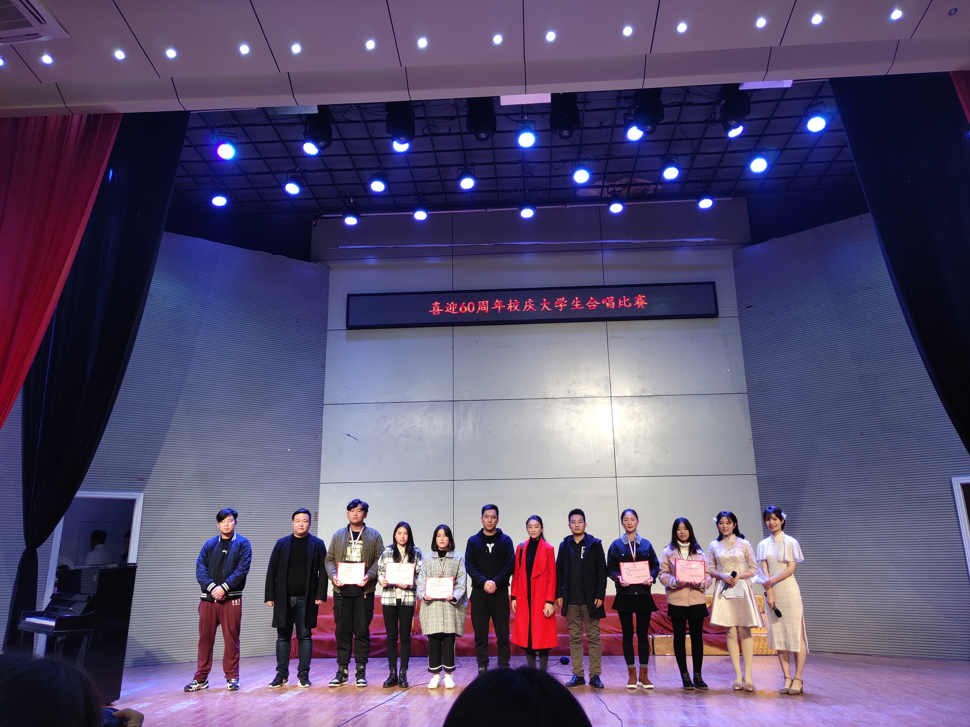 本网讯为喜迎校庆60周年,进一步丰富学生的课余文化生活,提高学生综合素质和艺术修养,推进校园文化建设,校团委协同六系于11月22日举办“喜迎校庆六十年 校歌红歌我先行”合唱比赛。校团委负责人 副书记张国平、各系团总支书记,刘绮等青年教师出席活动并担任评委。
