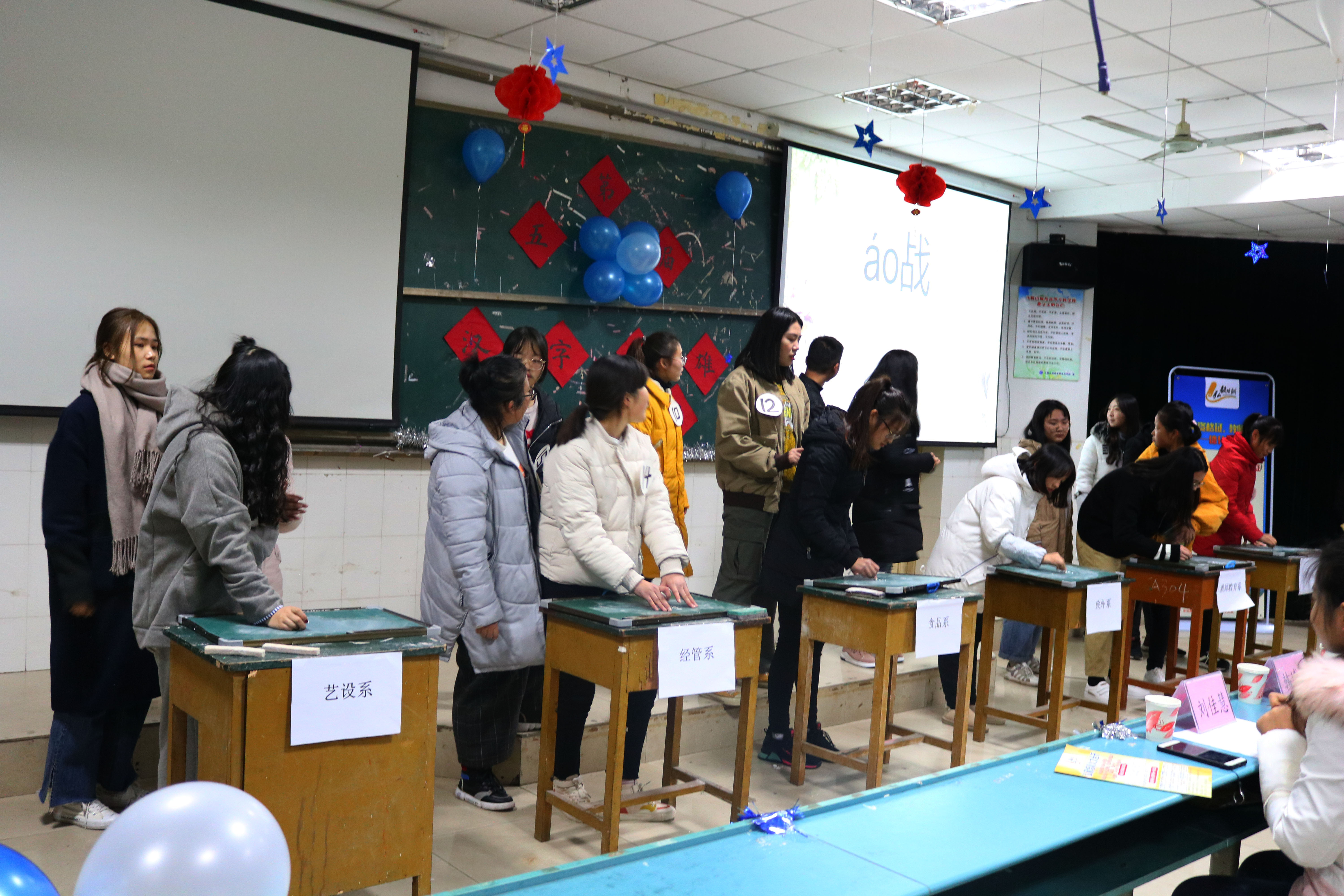 为激发同学们对汉字的兴趣,增进对汉字的感情,帮助大学生更多的了解中国文化的优良传统,增强文化自信和民族自豪感。12月23日晚6点30分,由校团委主办,校学生会办公室承办的第五届"汉字英雄"大赛在大阶梯教室二举行。14级校学生会办公室主任吴齐,16级校学生会办公室主任史帅、韩博涵,梦飞翔文学社社长周聪、子衿国学社社长刘佳参加了本次活动并担任评委。