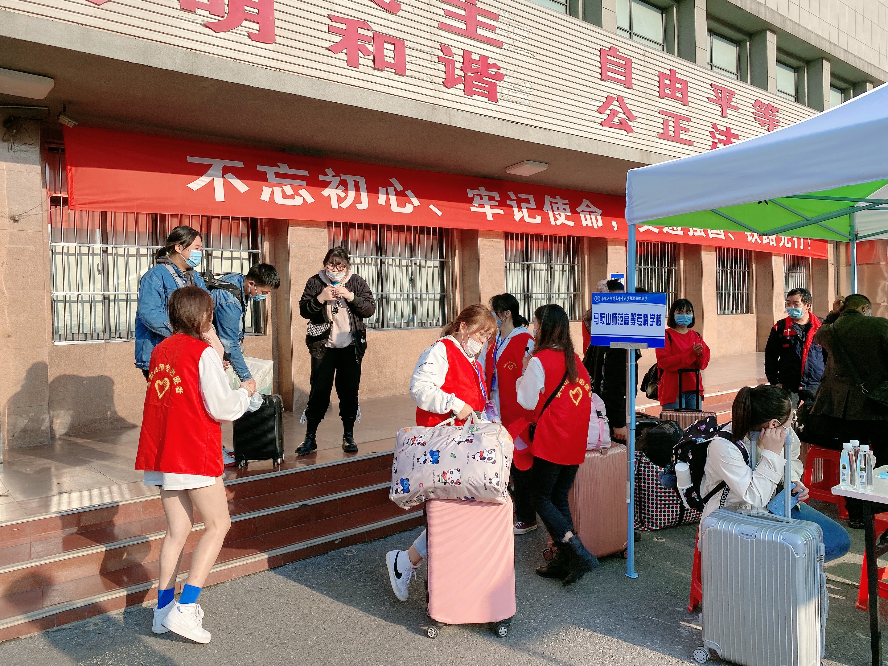 本网讯 10月11日,马鞍山师范高等专科学校在经过漫长的等待之后终于迎来了2020级的小萌新们。十月的马鞍山师专校园因新鲜血液的注入而增添新的活力。