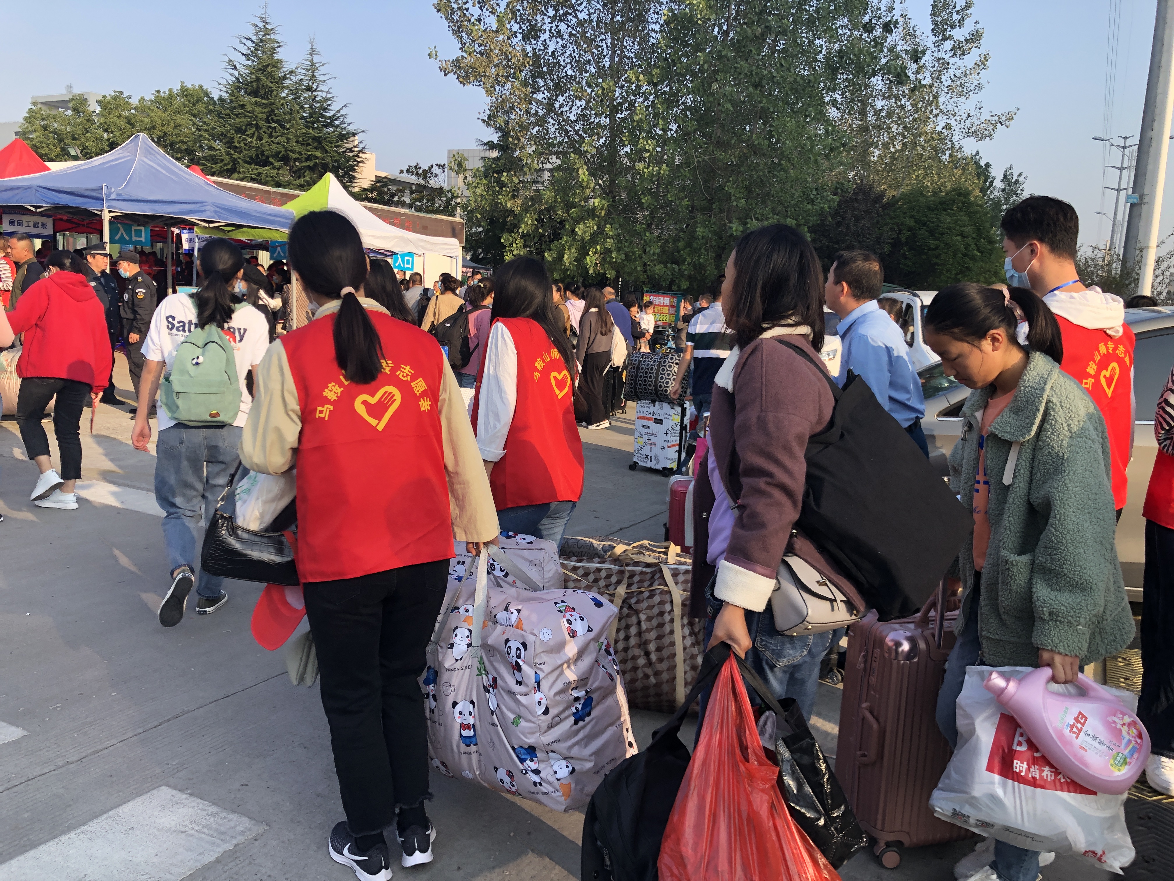 上午六时,迎新志愿者们步入了紧张有序的迎新工作之中,一张张热情的笑脸,一句句亲切的问候,一项项贴心的服务,欢迎远方而来的家人。不仅如此,学校还为新生准备了直达校园的校车,每辆车上都安排讲解员去耐心的解答每一位家长和学生提出的问题,帮助他们更好的了解学校的相关信息。每一趟车一到站口,志愿者就高举“马鞍山师范高等专科学校”的指示牌,并从家长手里“抢”过行李。耐心引领他们上车。长达20多分钟的校车车程也因为有了志愿者的陪伴而变得短暂有趣。 车辆一到达,在门口等待已久的志愿者们“蜂拥而上”,热情耐心的询问萌新们的所属系部,并带领他们开始进行相关的手续办理。 新生的一句“谢谢学长学姐”给了志愿者们极大的温暖和鼓励。
