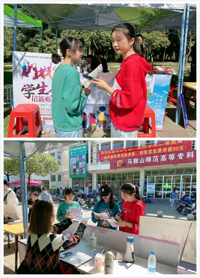 本网讯 为进一步加强学生组织工作力量,给2020级新生提供一个锻炼自我,展示自我,提升自我的平台,同时也为学生组织队伍充实优秀人才。10月11-24日,马鞍山师专学生会、青年志愿者服务队、大学生艺术团三大校级学生组织招新工作在学校食堂门口、音乐厅、各教学楼等场所顺利开展,并得到了2020级新生的积极响应。