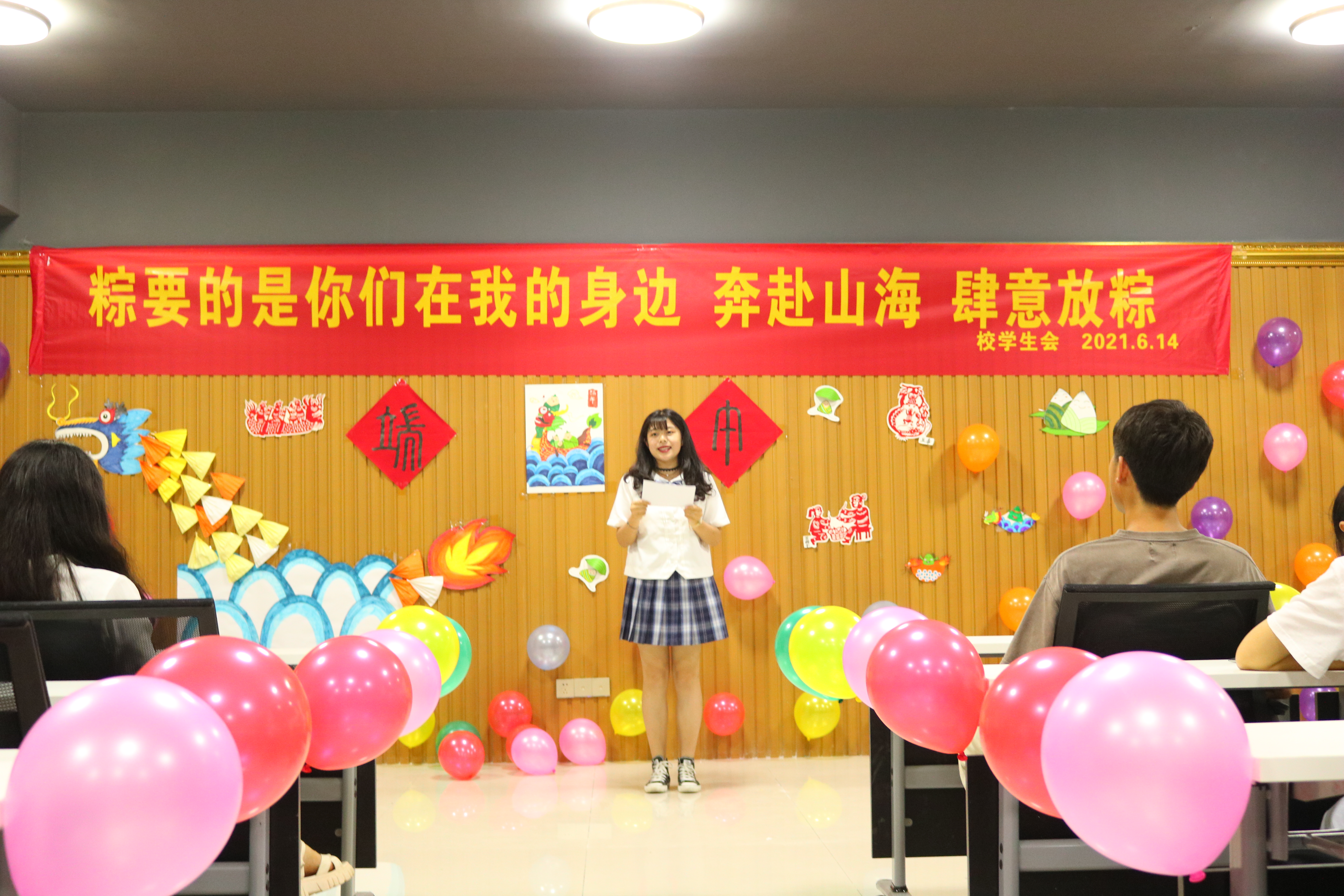 下午4点,“粽”意浓浓主题的座谈会在大学生活动中心开展,活动开始前同学们共同布置了会场,横幅上显眼的文字让同学们更加有了亲切感,拉进了大家彼此之间的距离。同学一边品尝精心准备的粽子和食品,一边开展趣味游戏,现场气氛热烈。学校历来重视对学生的关怀教育,主动把握各类教育节点,开展主题教育活动,帮助同学们更好地适应校园生活,感受集体关怀。