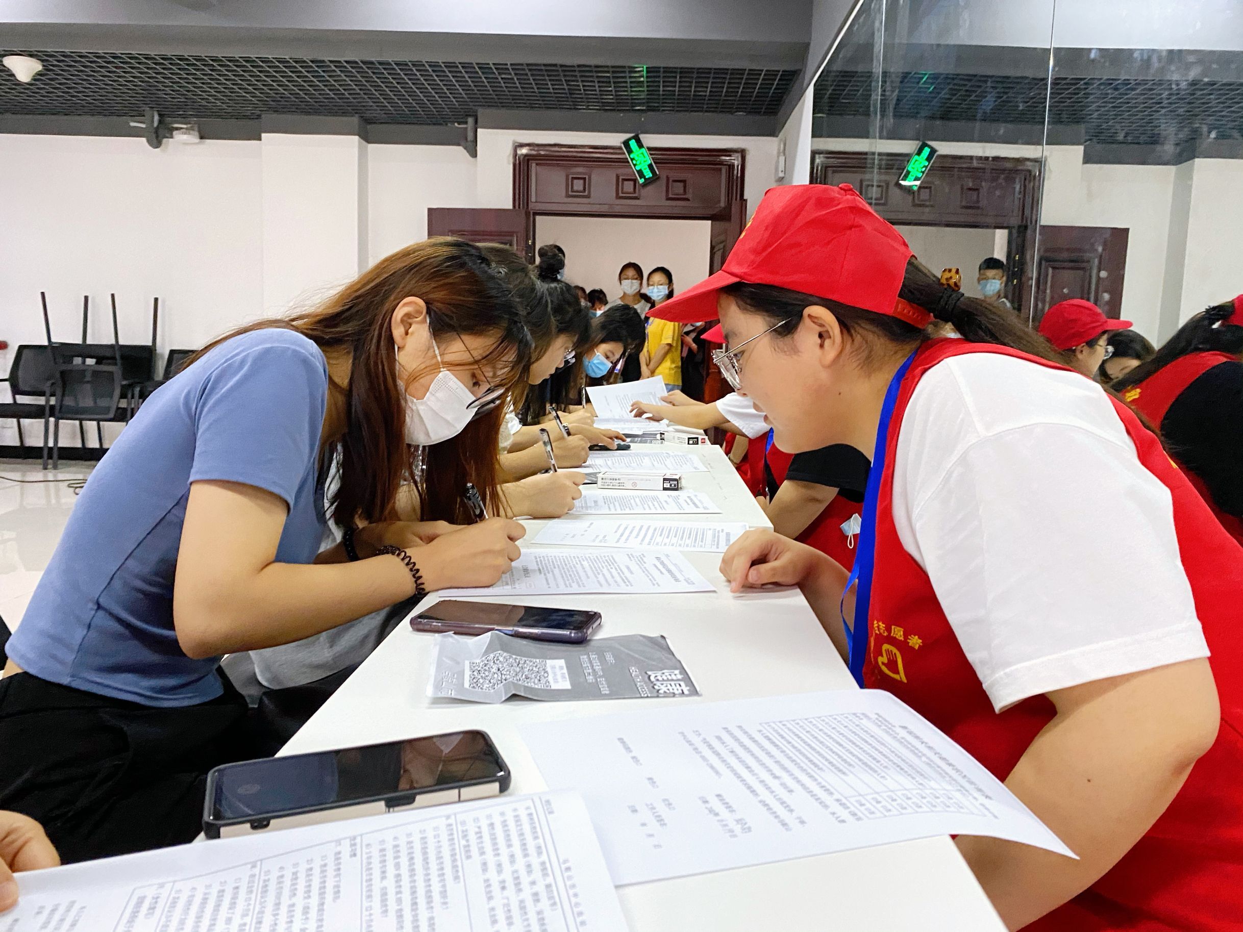 上午九点,校志愿者们早已到达指定地点,认真地协助血站工作人员准备献血所需物品,学习关于献血活动的各个环节,为献血活动顺利开展提供了保障。完成前期的准备工作之后,献血活动正式开始。志愿者们带领同学们填写个人信息单及报名表,然后进行登记、化验血型等基本检测,献血过程中志愿者们配合工作人员,耐心解答同学们的问题并缓解同学们的紧张情绪。现场的志愿者们在引导同学们献血的同时,还细心提醒大家在献血过程中及献血后要注意的事项。献血结束后由血站工作人员为献血者填写献血证,由志愿者将其引导至休息区,同时观察并询问献血者身体恢复等情况。每一位参与献血的同学脸上都洋溢着幸福的笑容,他们的无私奉献会使更多患者得到救助。