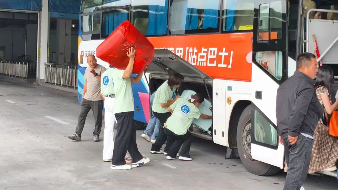 在雨山校区,志愿者们清晨便冒雨奔赴铁路东站接站点。雨水打湿了头发和衣衫,他们却依然高高举起“马鞍山师范高等专科学校欢迎新同学”的引导牌,不断在人群中寻找着略带迷茫的新生面孔。“同学,是来报到的吗?我们来帮你!”“家长您请这边休息,校车马上出发!”他们一边亲切问候,一边主动接过沉甸甸的行李,引导新生核验信息、有序登车。等候间隙,志愿者们还热情分享校园生活小贴士:“一食堂二楼的牛肉面特别香!”“图书馆五楼是晨读圣地哦!”……欢声笑语中,陌生的距离悄然消融。直到目送每一位新生安全上车,他们才放心转身,继续迎接下一批抵达的同学。